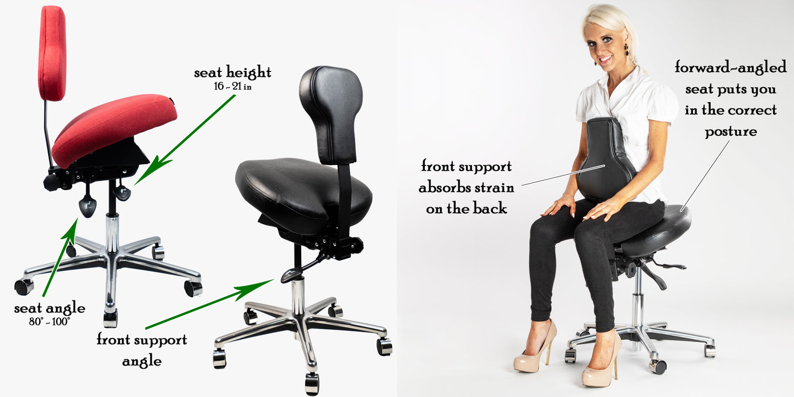 When you sit in a conventional chair your pelvis tucks under, causing your lumbar spine to bend forward.