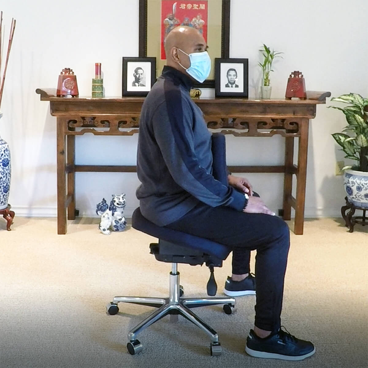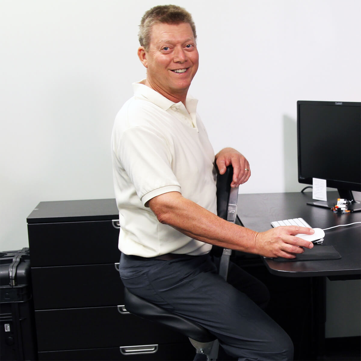 NuChair eliminates sitting back pain by maintaining your standing POSTURE, from you head down to your pelvis, while you are sitting. Comfortably and effortlessly. No other chair design does this.