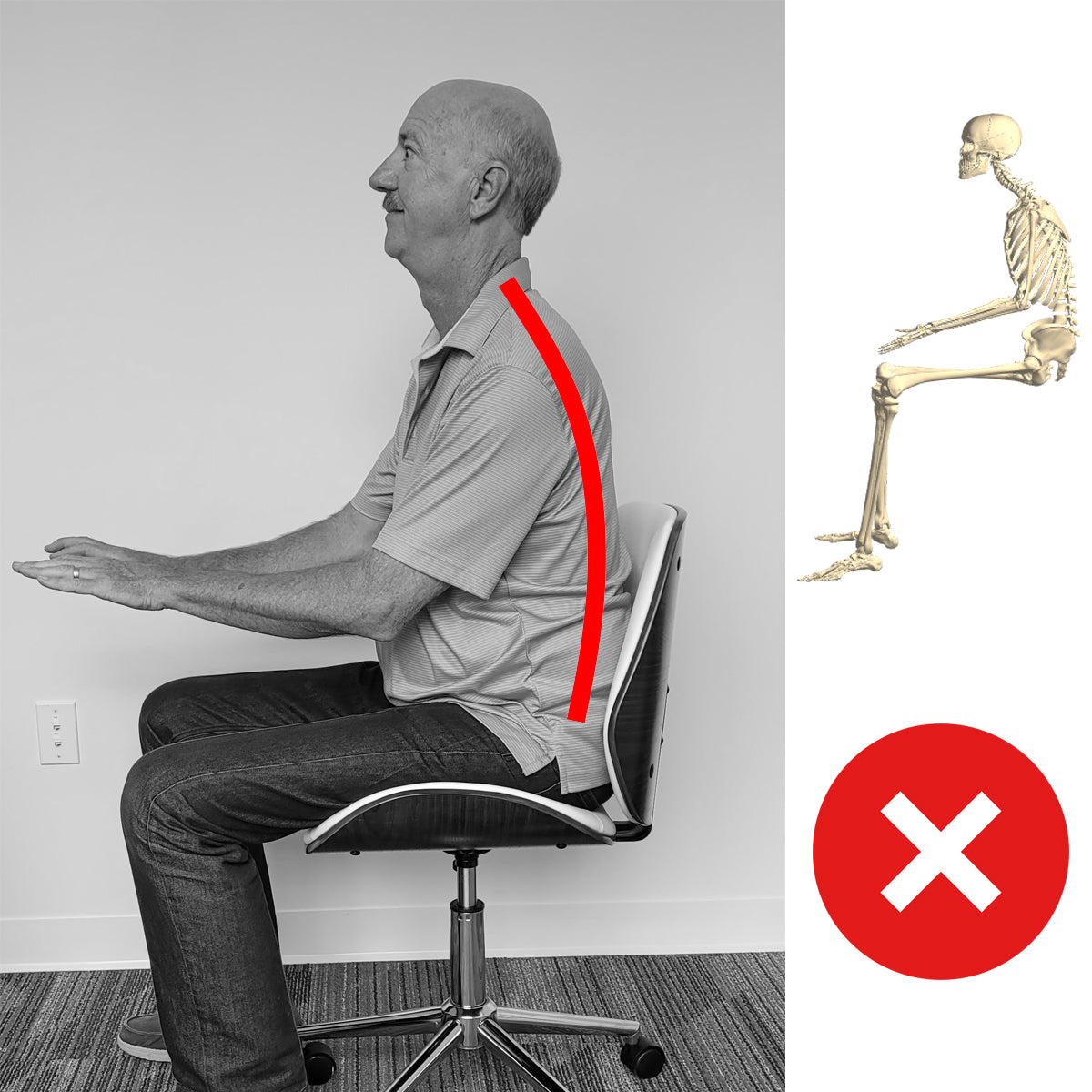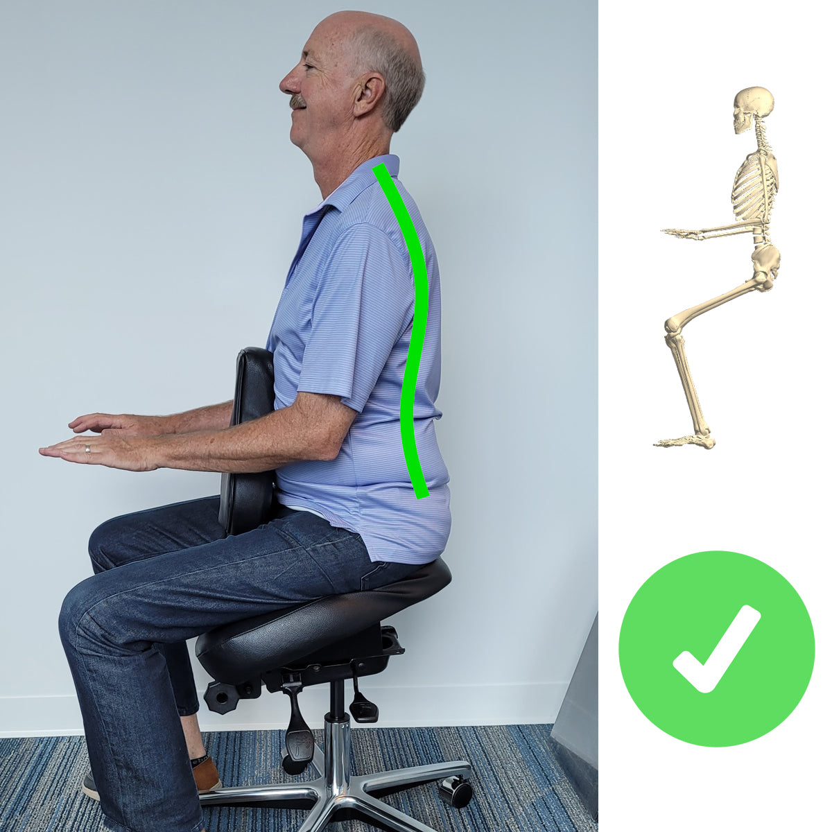 When you sit in a conventional chair your pelvis tucks under, causing your lumbar spine to bend forward.